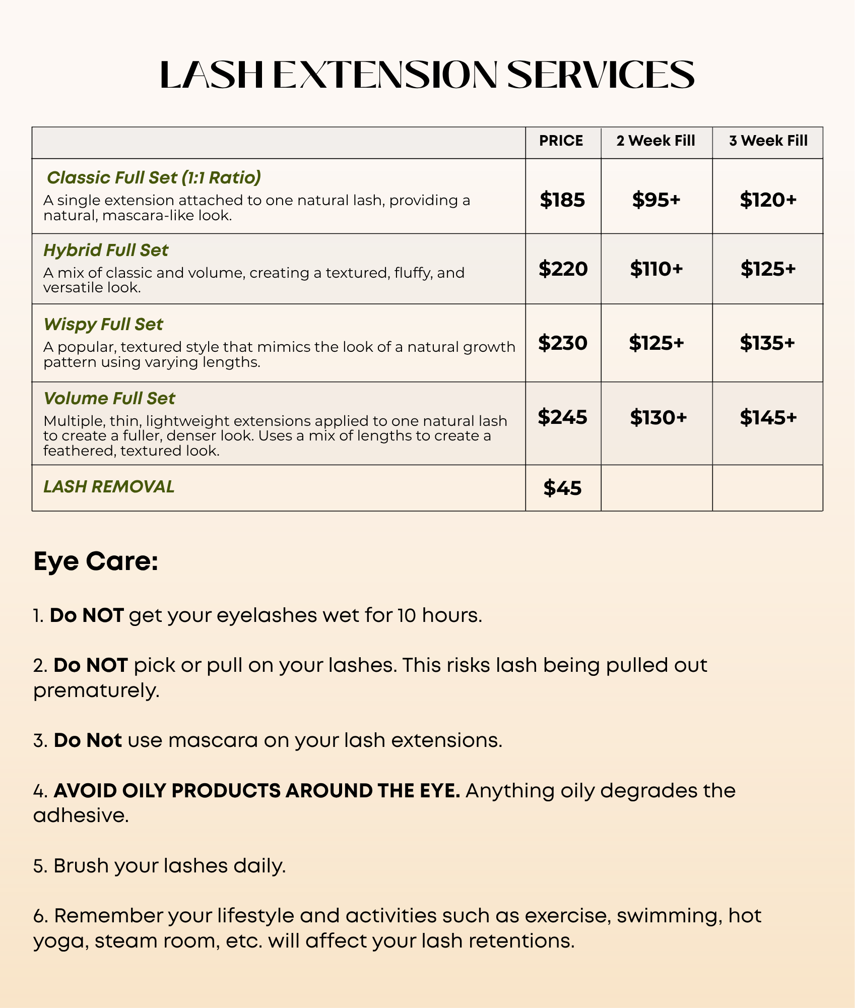 OUTSIDE FILLS CLIENTS-All clients with current lashes from another Studio/Artist will be charged an outside fill fee $20+ depending on the condition of your lashes. During your initial appointment, your artist will assess the condition of your lashes. If your lashes are not up to our standard and we are unable to fill, we will need to do a full removal and then a full set.